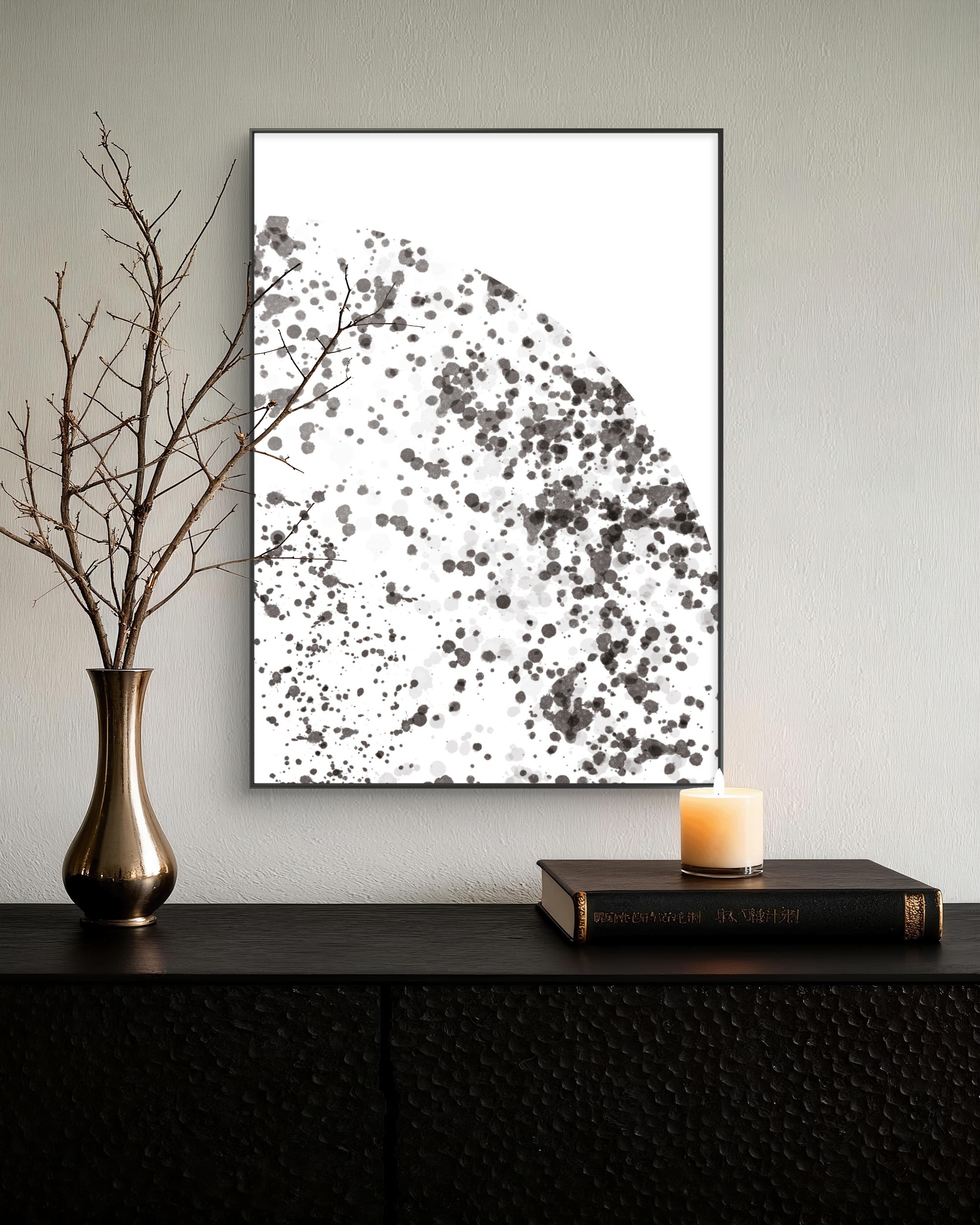 Plakat „Rozproszenie” to artystyczna interpretacja ruchu i lekkości w minimalistycznym wydaniu. Abstrakcyjne formy w odcieniach czerni i szarości tworzą delikatny rytm i głębię. Idealny do wnętrz w stylu modern, scandi i minimalistycznym, wprowadzając subtelną elegancję i spokój. Kolekcja Monochrome Flow – rytm form i światła to zestaw plakatów inspirowanych abstrakcyjną ekspresją i harmonią natury. Subtelne, czarno-białe kompozycje.