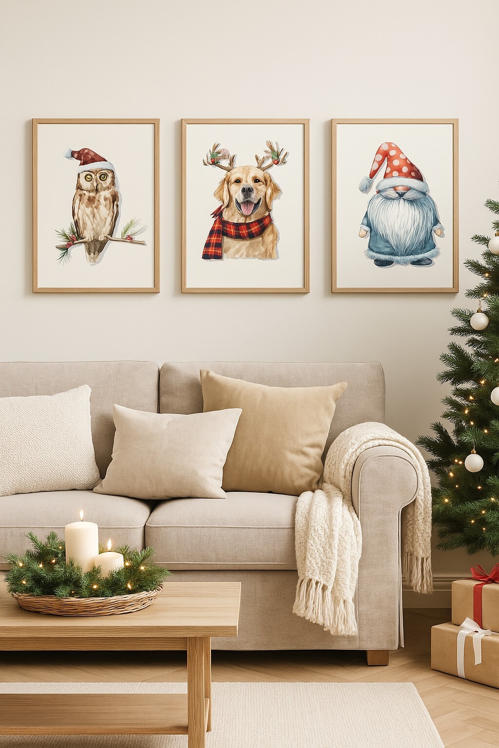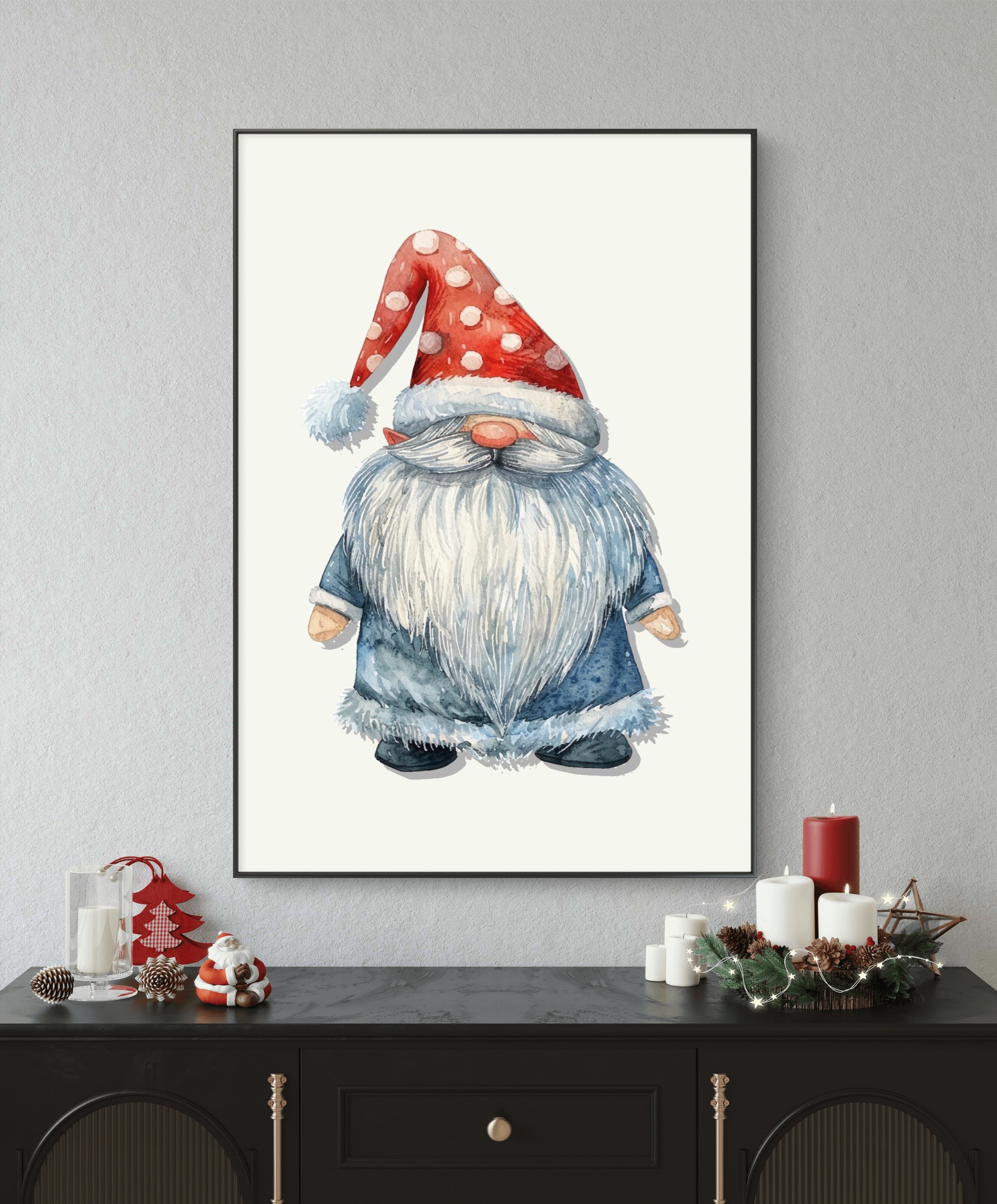 Wprowadź do swojego wnętrza ciepło i radość świąt dzięki kolekcji „Świąteczna Magia Akwareli”. To unikalna seria plakatów bożonarodzeniowych, wykonanych w subtelnym stylu akwareli, łącząca urocze zwierzęta, klasyczne symbole świąt i bajkowe postacie. Krasnal w czerwonej czapce i niebieskim płaszczu to idealna ilustracja w stylu skandynawskim. Utrzymany w stonowanej kolorystyce, nadaje się do wnętrz minimalistycznych i naturalnych. Wprowadza przytulność, bajkowy klimat i urok świąt do każdego pomieszczenia.